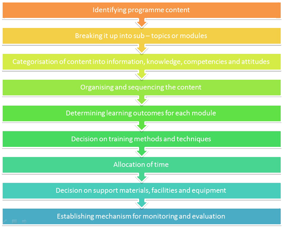 After establishing programme objectives, the design and development of content goes through the following process: .